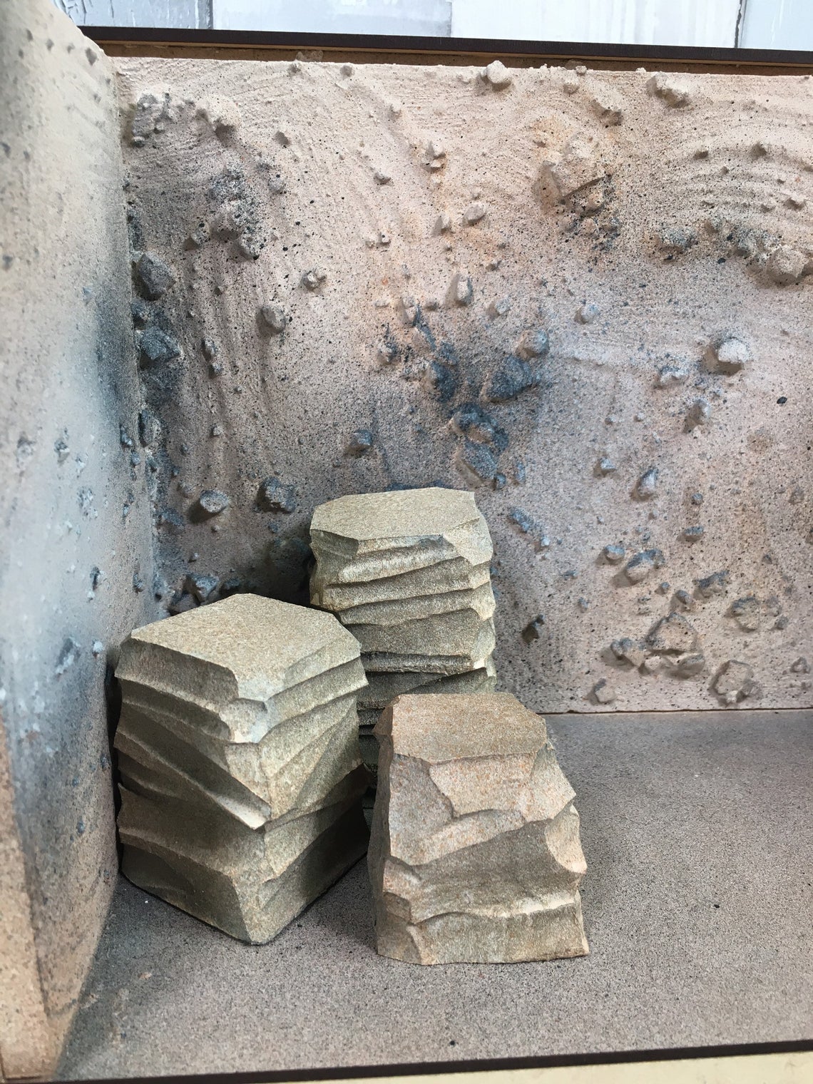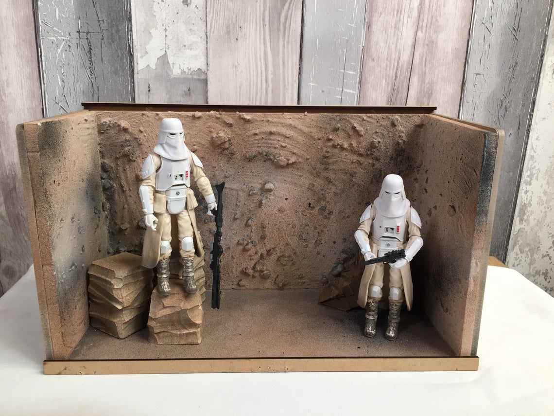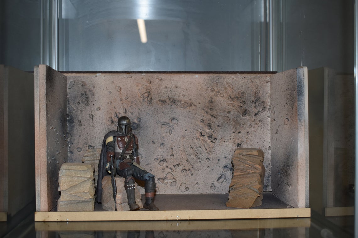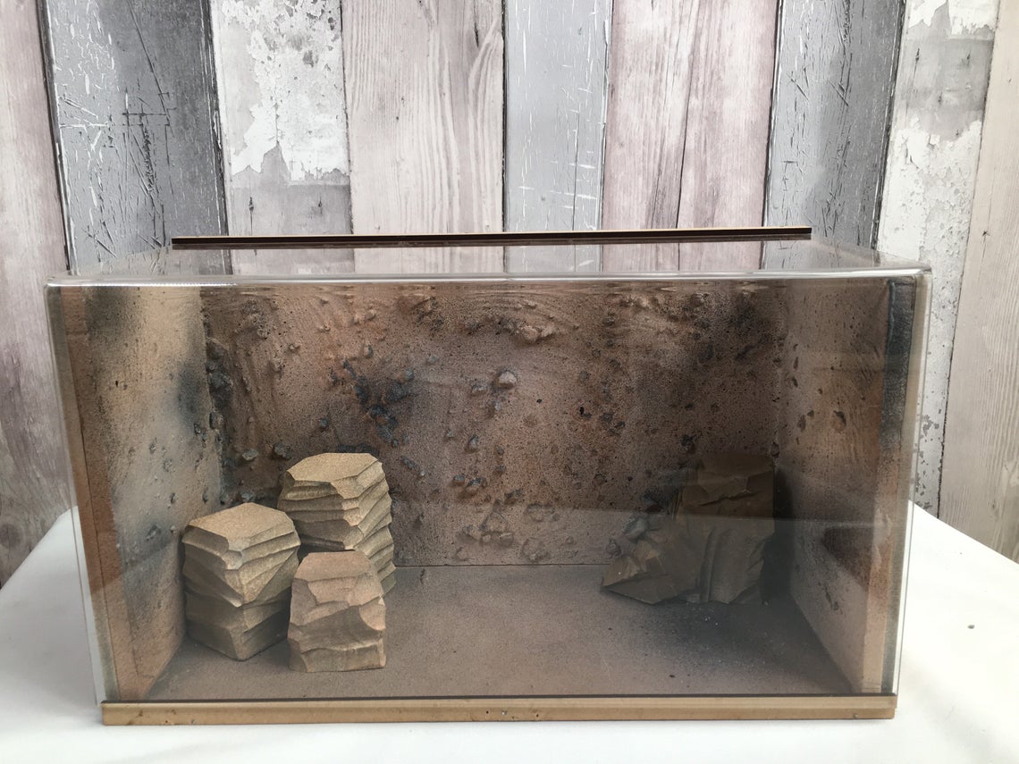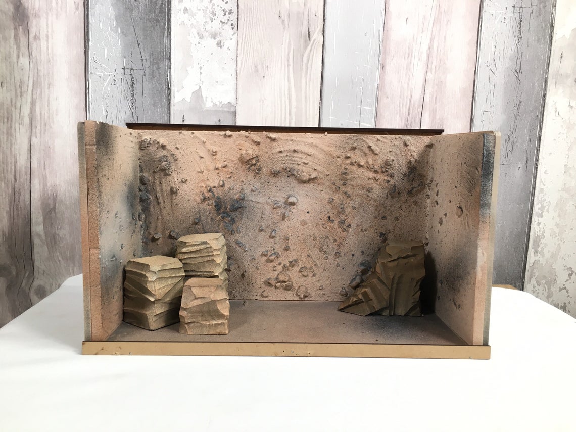 Fully Built & Painted Acrylic Fronted Action Figure Diorama Display Case for 6″ 1:12 Scale Fits Detolf Sand Rock Themed